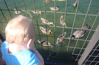 To celebrate, we went to the new Nature Boardwalk at the Lincoln Park Zoo. They have a big pond with ducks and geese. We took some old bread to feed the ducks with. It was lots of fun! Maddox loved watching the ducks.